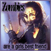 Description: "Zombies are a girl's best friend" quote with a picture of Julie from Return of the Living Dead 3