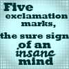 Description: Five Exclamation Marks, the sure sign of an unstable mind